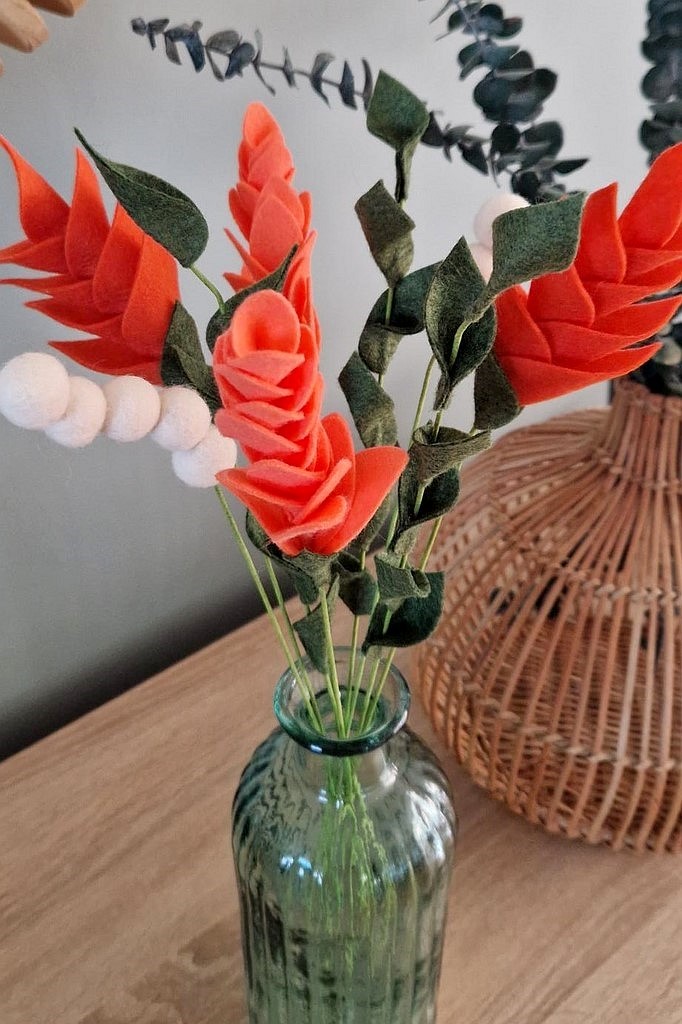 Matières : feutrine, laine feutrée, tiges florales